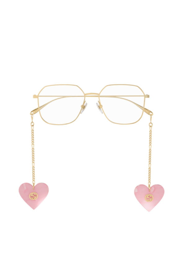 Lunettes de vue carrées avec breloques en forme de cœur de Gucci
