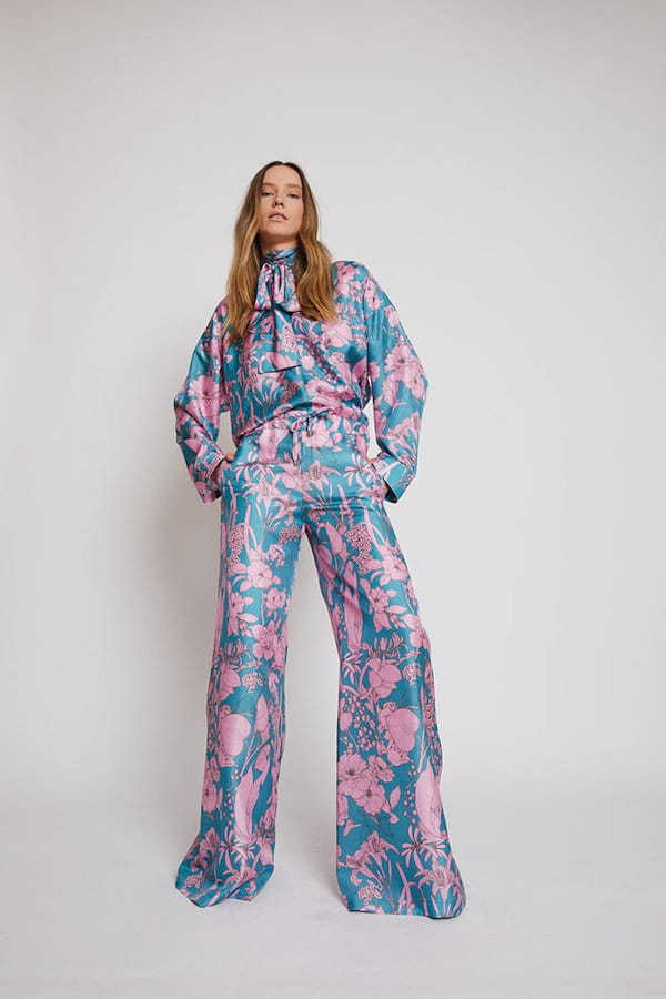 Pantalon en twill de soie imprimé d'Oud Paris
