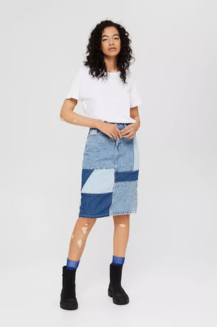 Jupe en jean patchwork en coton biologique d'Esprit