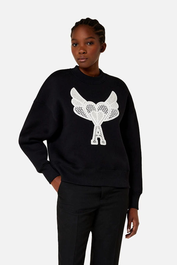 Sweatshirt noir et dentelle "Ami de Cœur" de Ami Paris