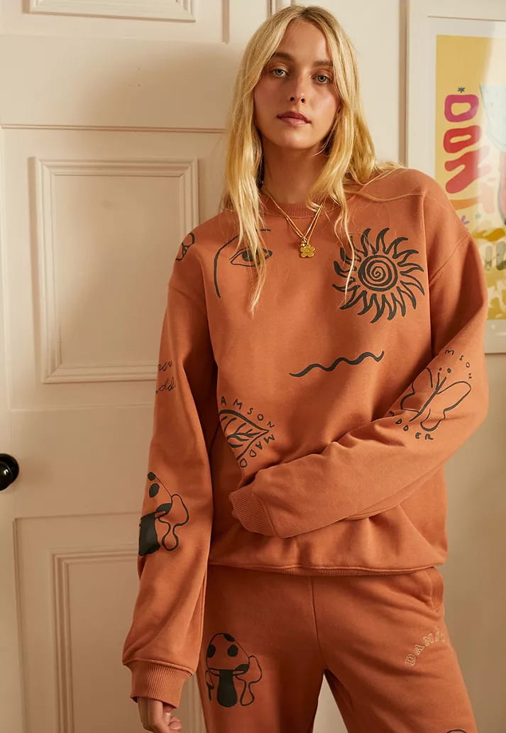 Sweatshirt "Robyn" imprimé croquis de Damson Madder sur Urban Outfitters