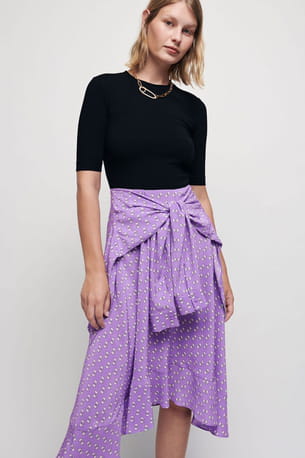 Jupe trompe-l'œil à imprimé nœuds lilas de Maje