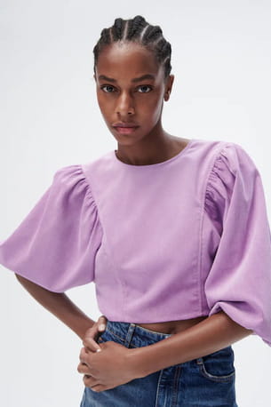 Top à manches amples lilas de Zara