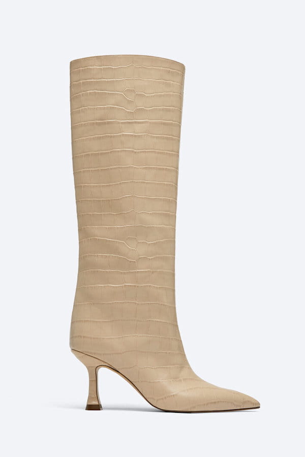 Bottes en cuir embossé croco d'Uterqüe © Uterqüe