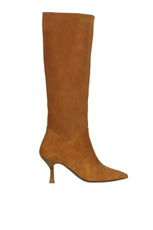 Bottes camel à kitten heels et bouts pointus de JB. Martin