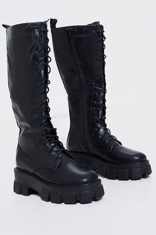 Bottes noires à lacets et semelles crantées de Prettylittlething