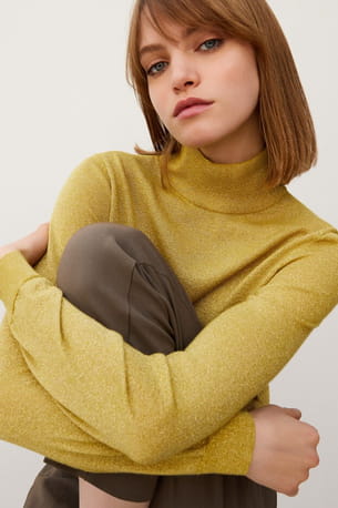 Pull couleur chaume métallisé à col montant d'Eric Bompard