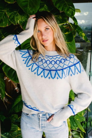 Pull blanc à motifs en cachemire à col rond et à mitaines de Kujten