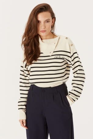 Pull ivoire et noir à marinière "C'est la vie" à boutons de Maison Labiche