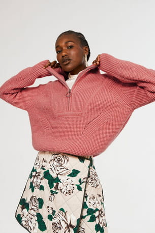 Pull rose zippé "Beau comme un camion" de Claudie Pierlot