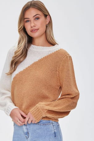 Pull crème et marron color block à bordures côtelées de Forever 21