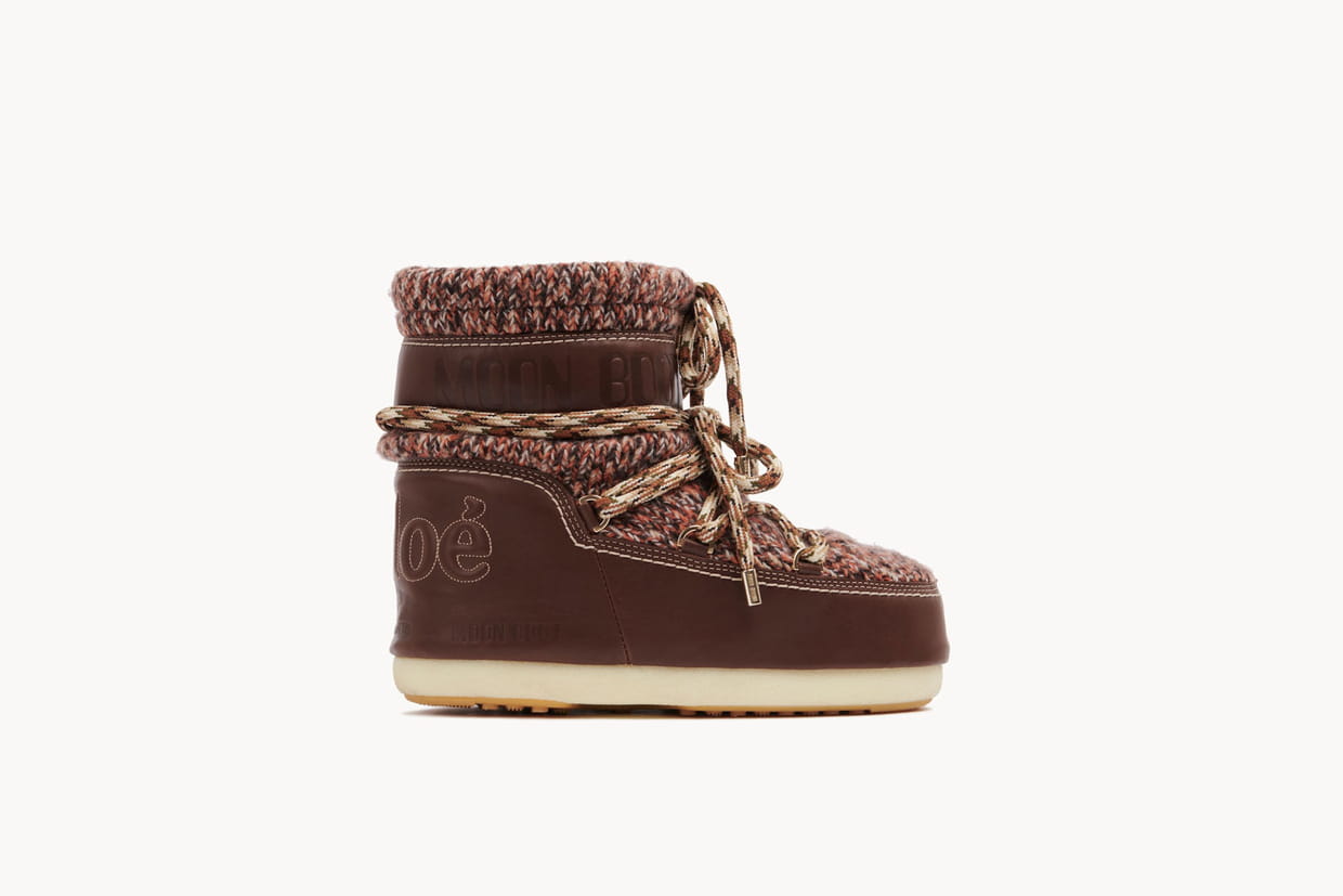 Bottines après-ski en cuir de maille et laine de Chloé x Moon Boot