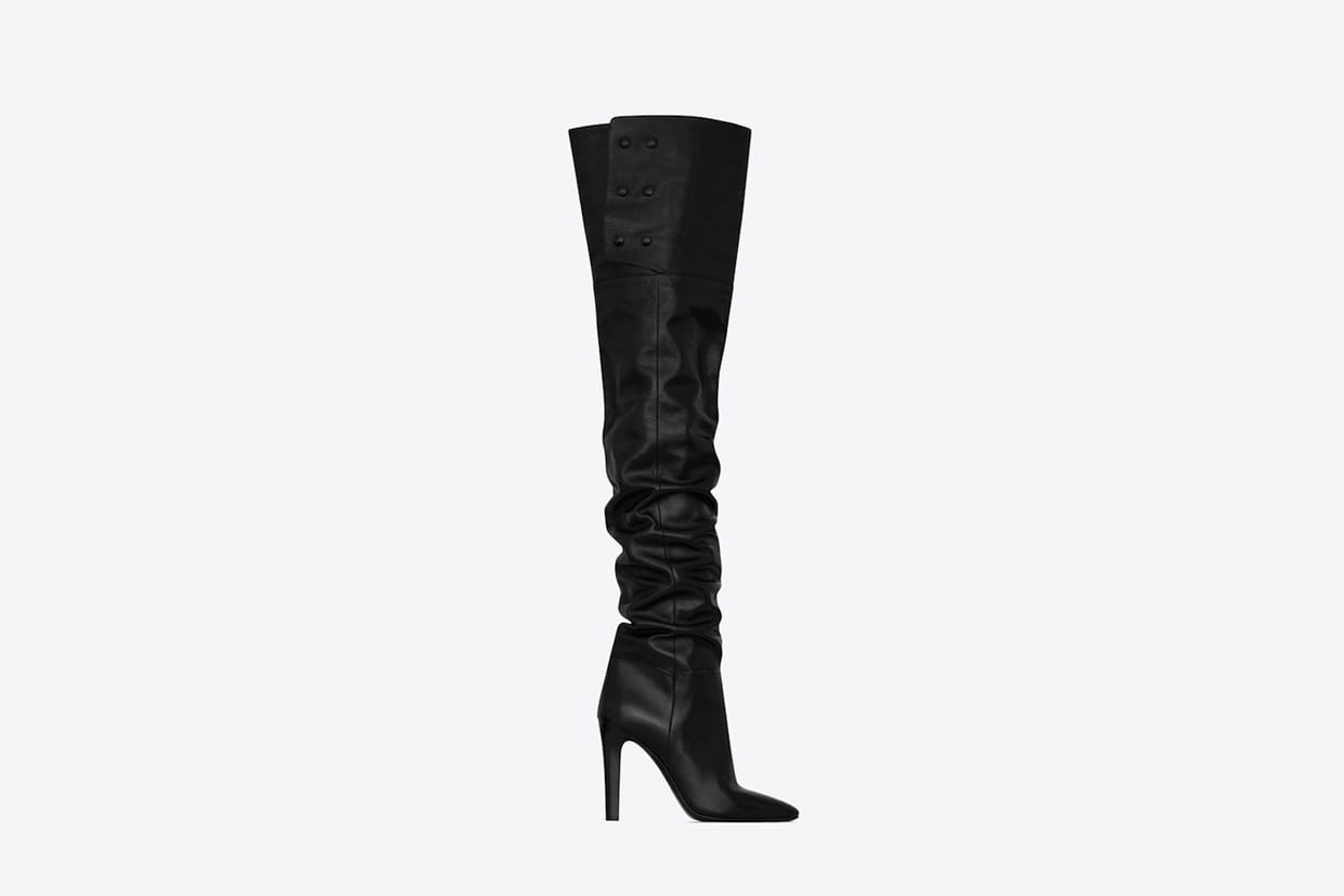 Cuissardes noires en cuir grain brillant à boutons pression de Saint Laurent
