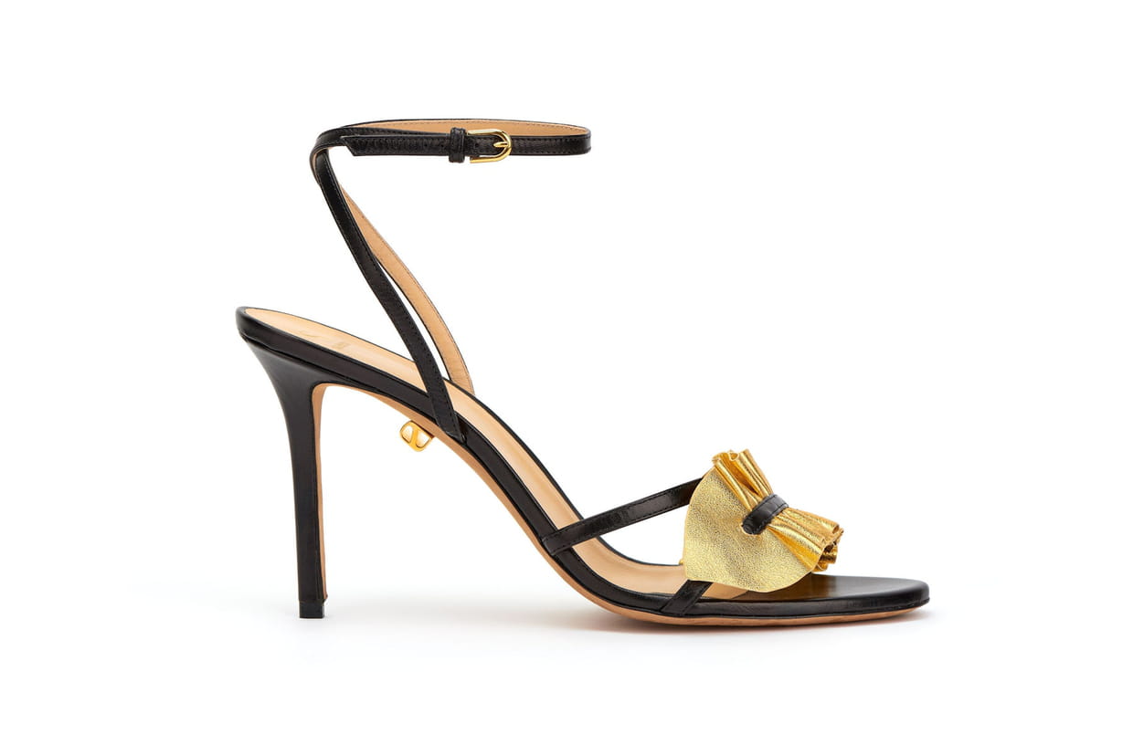 Sandales en cuir noir et doré de Skorpios