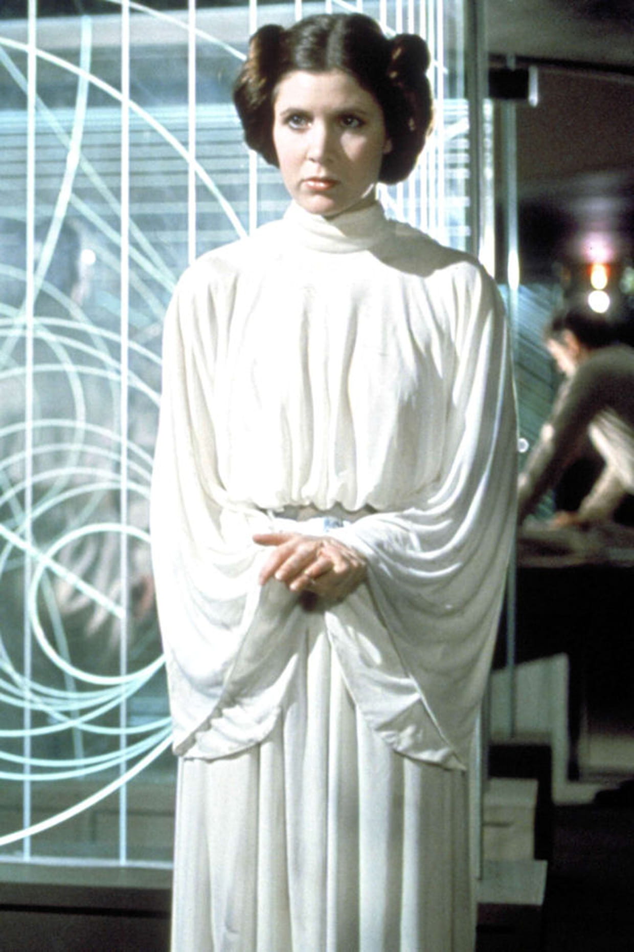 Comme Princesse Leia jouée par Carrie Fisher dans Star Wars, épisode IV (1977).