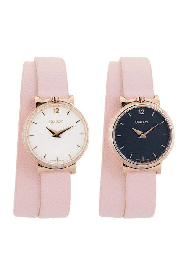 Duo de montres à cadrans ronds noir ou blanc et bracelets roses de Guillot