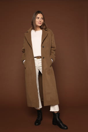 Manteau café en drap de laine "Bradford" de Maison Sarah Lavoine