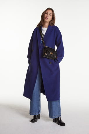 Manteau bleu en laine double face oversize de The Kooples