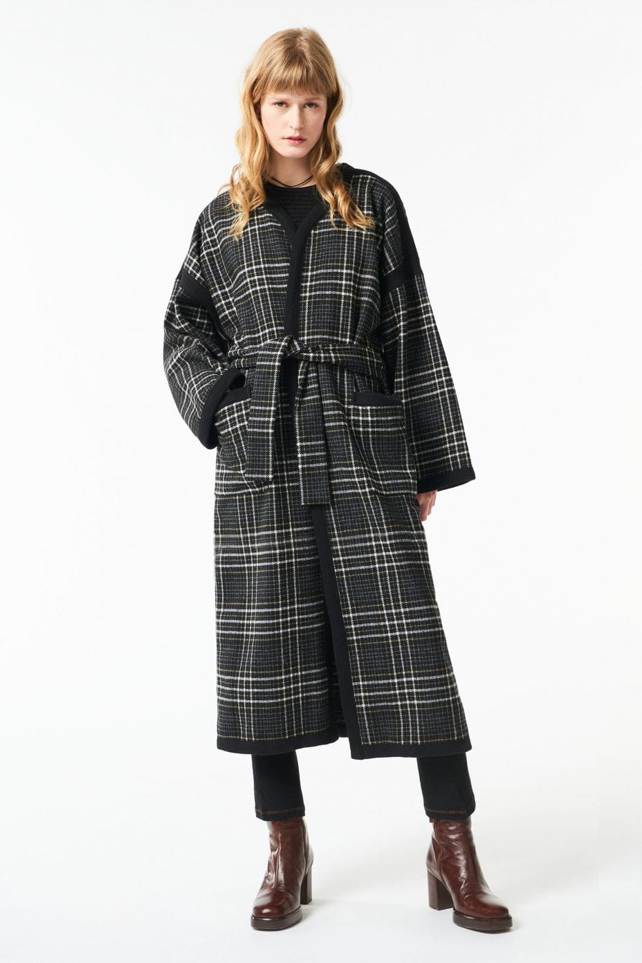 Manteau multicolore à carreaux ceinturé "Haro" d'Antik Batik