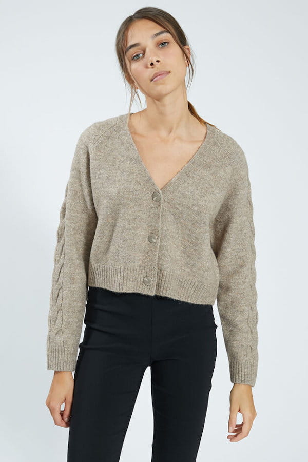 Cardigan taupe à manches torsadées de Pimkie