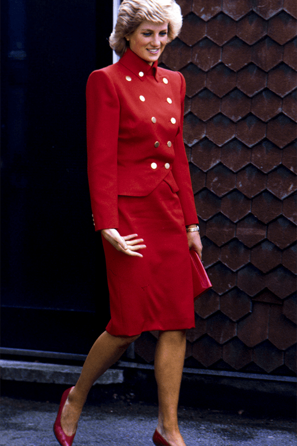 Lady Diana en tailleur rouge en 1987 © News Syndication/Abaca