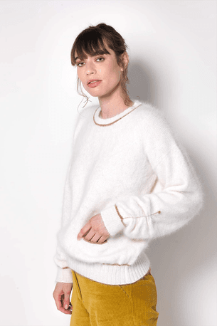 Pull en maille écru à liseré doré "Apoline" d'Anny Blatt