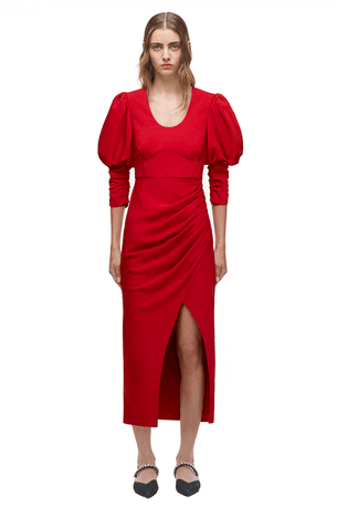 Robe rouge fendue à manches bouffantes de Self-Portrait