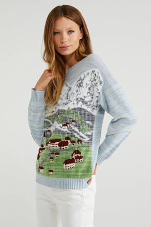 Pull de Noël avec motif paysage de montagne de Benetton © Benetton
