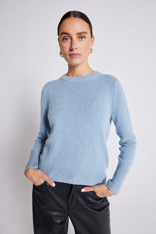 Pull en cachemire bleu ciel "Achille" à col rond de Notshy