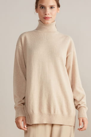 Pull en cachemire vanille à col roulé et fendu ultra doux de Falconeri