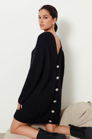 Robe noire "Beyla" boutonnée dans le dos de Ba&sh