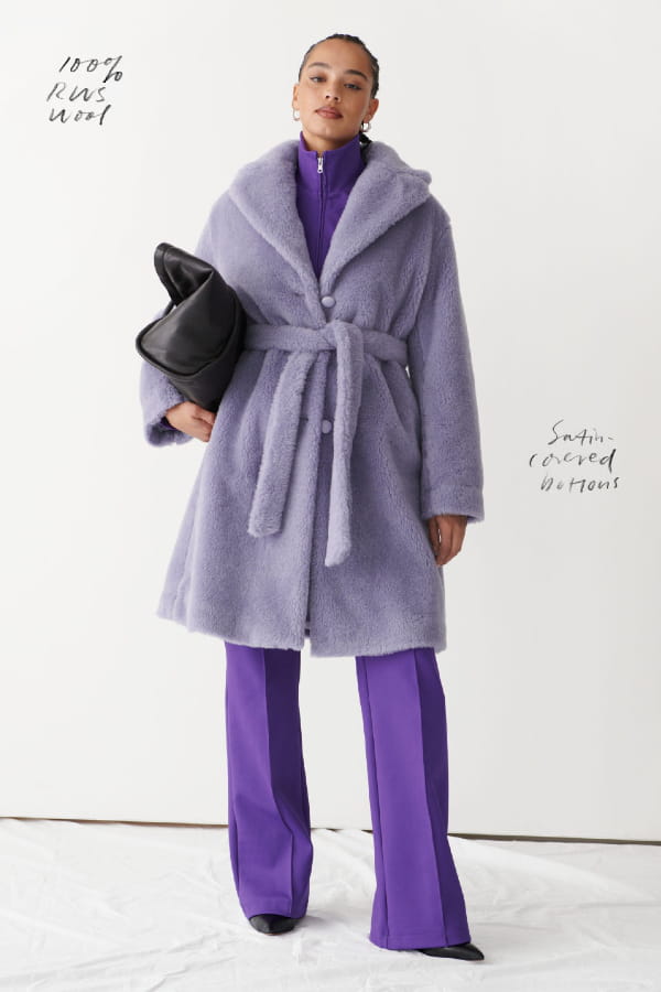 Manteau en fausse fourrure lilas ceinturé de & Other Stories