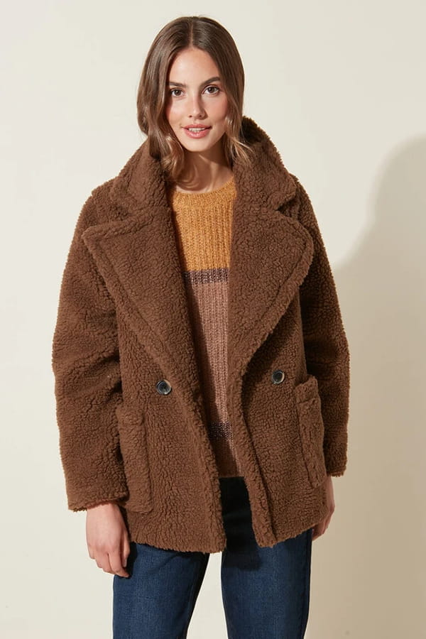 Manteau en fausse fourrure chocolat "Miggy" de Sud Express