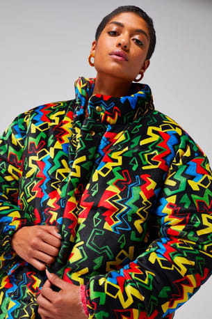 Doudoune jaune imprimé électrique en velours "Donna" de Heimstone
