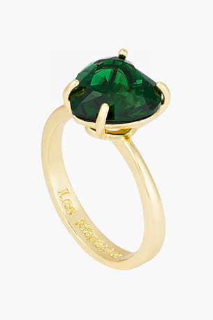 Bague solitaire "La diamantine" pierre cœur vert émeraude