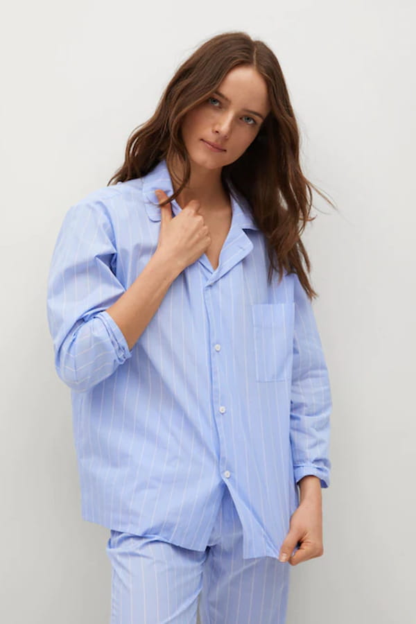 Chemise de pyjama bleu ciel à rayures en coton de Mango