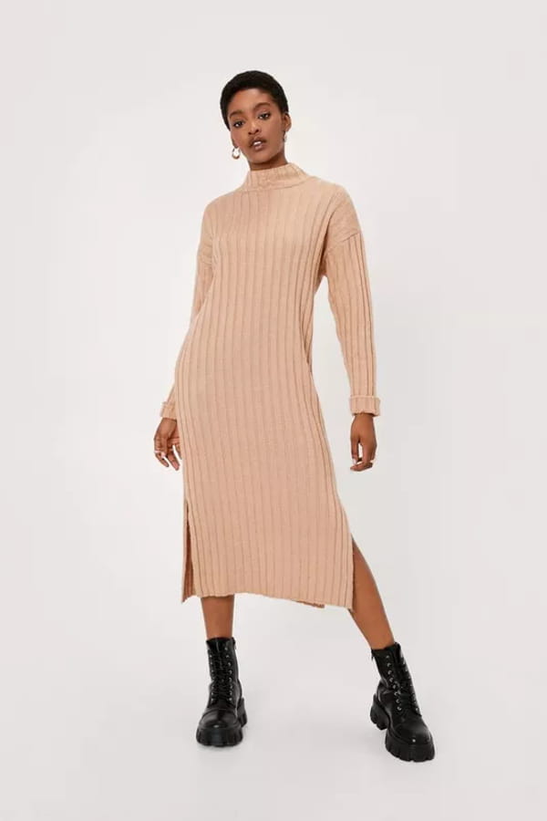 Robe pull camel mi-longue en maille côtelée de Nasty Gal
