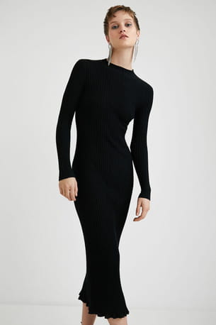 Robe noire midi slim côtelée de Desigual