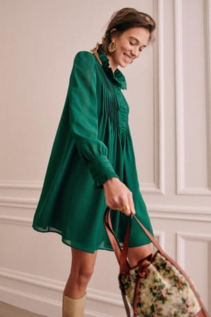 Robe vert bouteille à col à volant "Rita" ample de Sézane