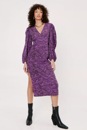 Robe midi imprimé zèbre et manches bouffantes de Nasty Gal