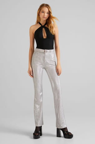 Pantalon scintillant taille haute de Bershka