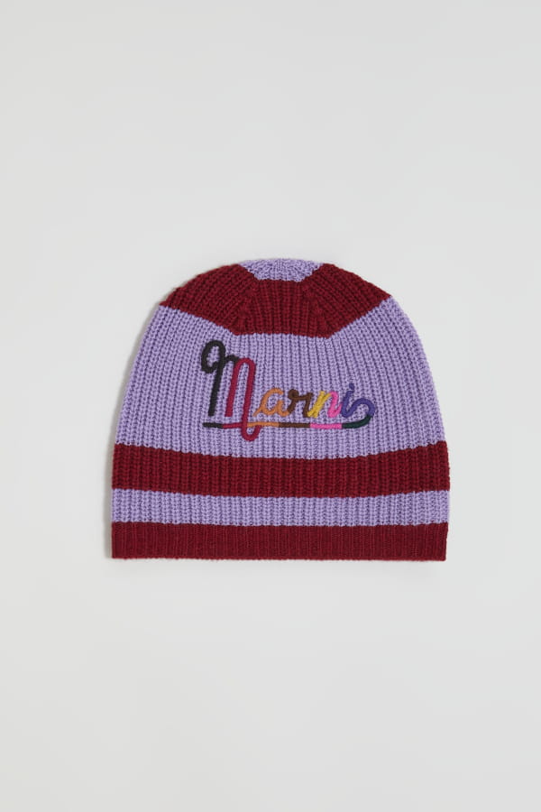 Bonnet bordeaux et violet en laine "Shetland" de Marni