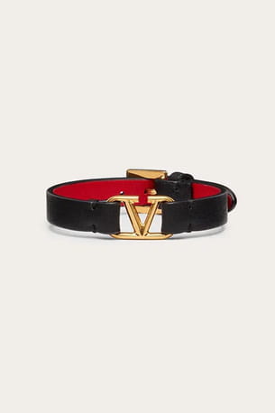 Bracelet noir, rouge et doré "V" logo signature en cuir de Valentino