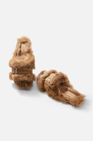 Mules beiges en fausse fourrure 'Irina' de Clergerie