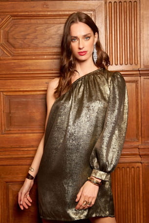 Robe dorée one shoulder "Déotille" de By Louise