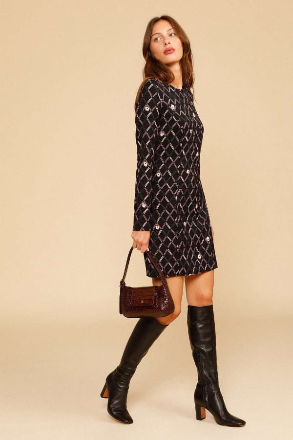 Robe noire à carreaux brillants "Sana" de Rouje
