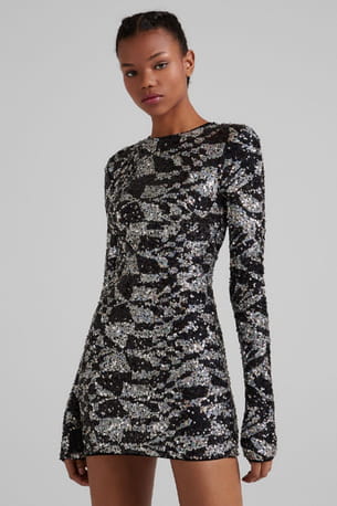 Robe noire et argentée pailletée psychédélique à dos lacé de Bershka