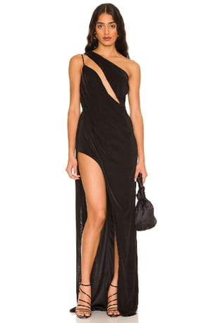 Robe noire longue à fente "A cut above" de Katie May