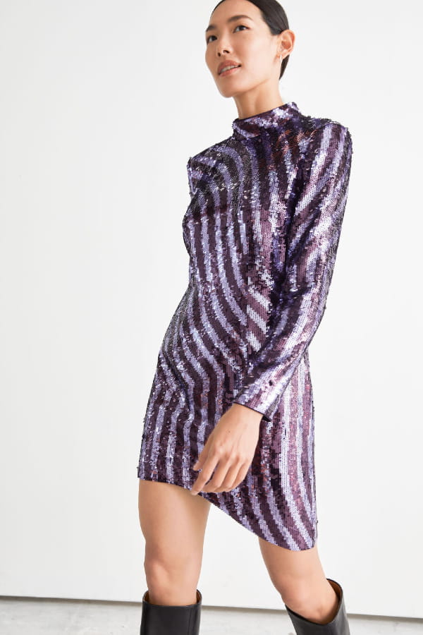 Robe violette à col montant asymétrique et ajustée à sequins de & Other Stories