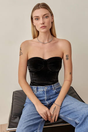 Body bustier en velours upcyclé noir "Fabien" de Reformation